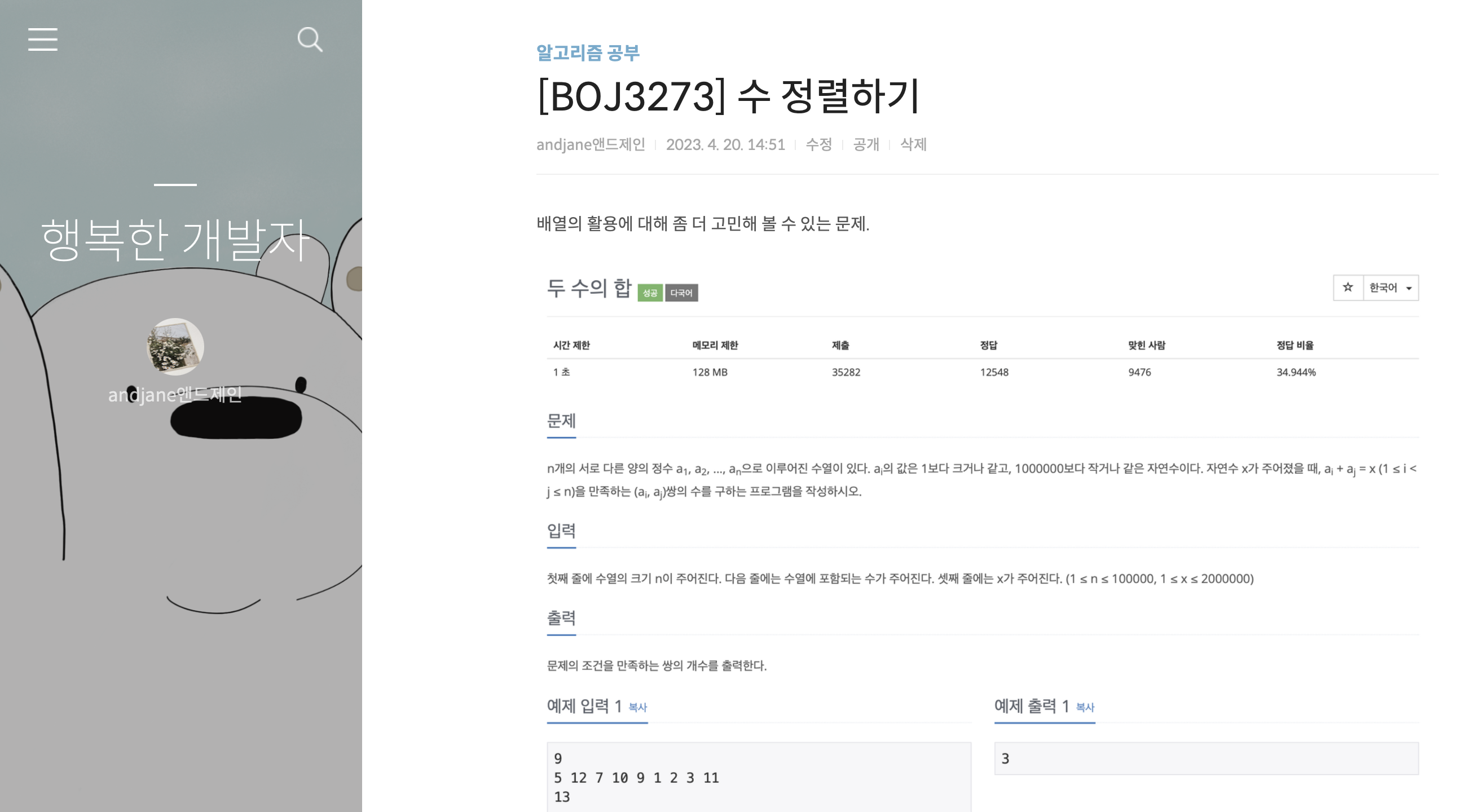 | [BOJ3273] 수 정렬하기 (1) | 2023.04.20 |