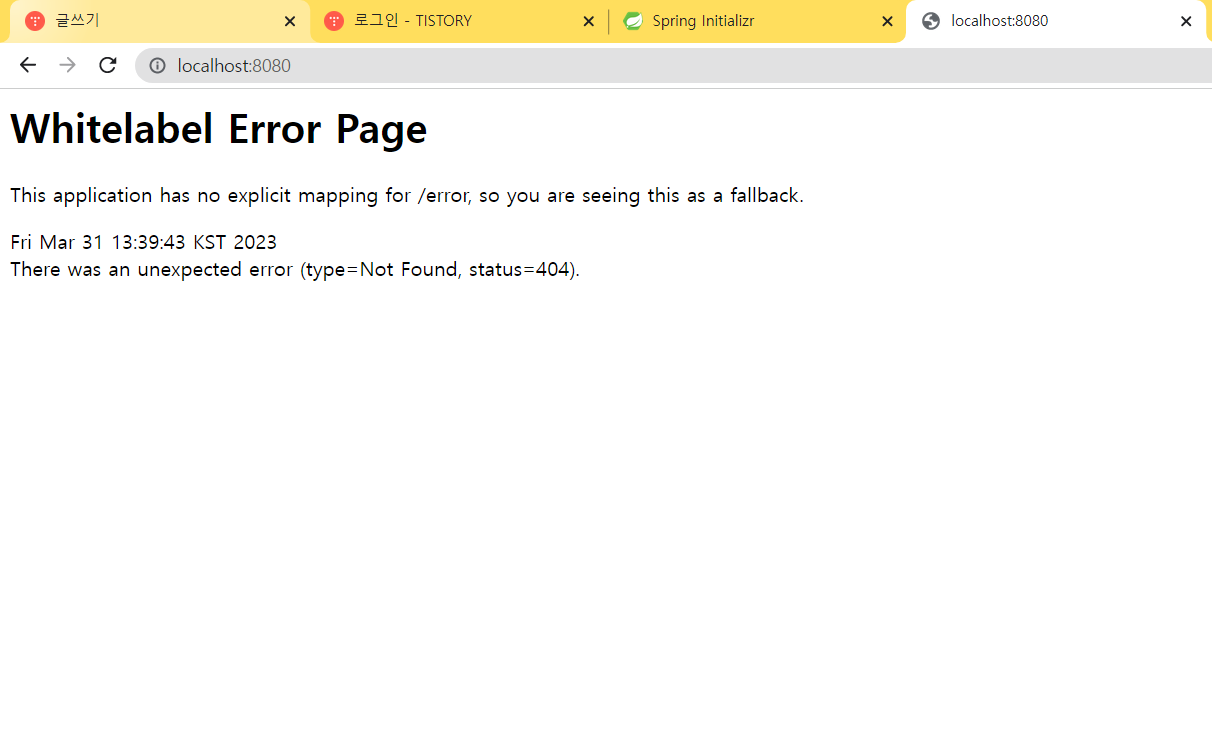 localhost:8080으로 들어가면 아래와 같이 홈페이지가 뜬다.